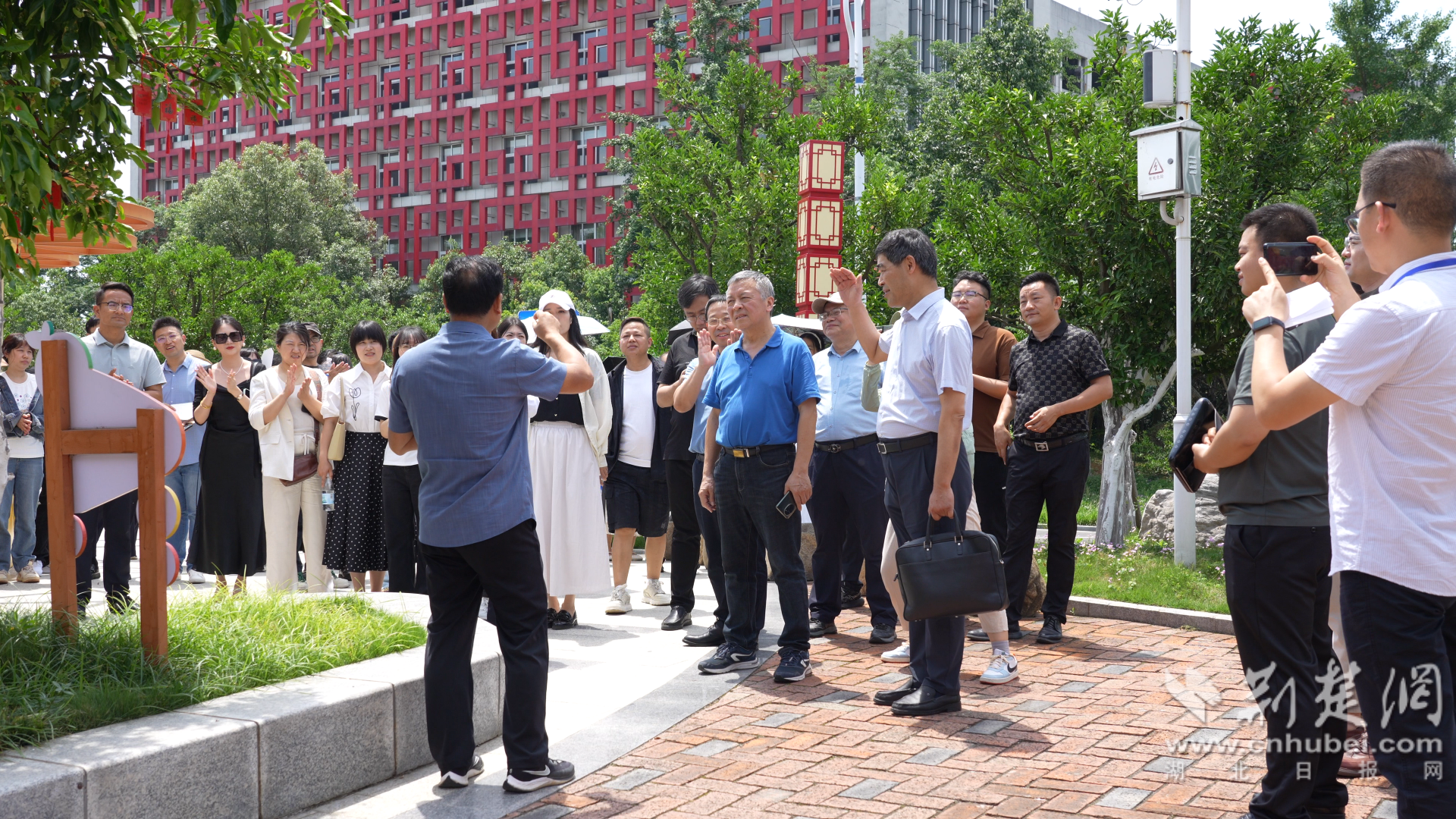 專(zhuān)家學(xué)者、網(wǎng)評創(chuàng )作者、媒體代表參觀(guān)土老憨桔醋莊園。(宜都市融媒體中心 供圖)
